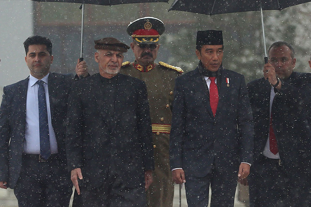 Kabul: Presiden Joko Widodo melakukan kunjungan kenegaraan ke Afghanistan, Senin, 29 Januari 2018. Kunjungan Presiden Jokowi tersebut merupakan kunjungan kedua Presiden RI ke Afghanistan setelah Presiden Sukarno pada 1961. Foto: Sekretariat Presiden/KBRI Kabul/Alfin/AFP/POOL/Massoud Hossaini Cek Berita dan Artikel yang lain di Google News