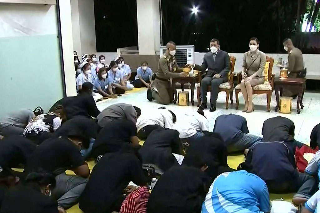 Upacara pemakaman Buddhis dan doa untuk korban yang meninggal diperkirakan akan dimulai Sabtu, 8 Oktober 2022 malam, memulai tiga hari berkabung untuk para korban salah satu pembunuhan massal terburuk di negara itu. AFP PHOTO/Royal Pool via AFPTV Cek Berita dan Artikel yang lain di Google News
