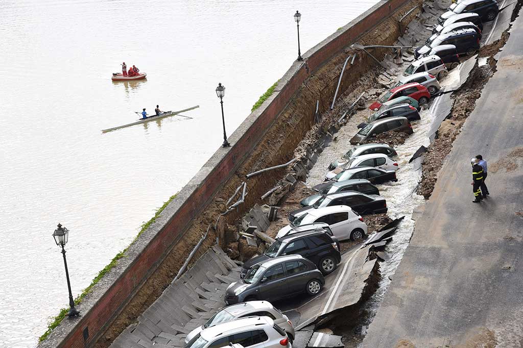 Metrotvnews.com, Florence: Sebuah ruas jalan di tepi Sungai Arno di Florence, Italia, tiba-tiba ambles dan menimbulkan lubang besar sepanjang 200 meter, Rabu (25/5/2016). Tidak ada korban luka akibat kejadian tersebut, namun puluhan mobil yang tengah parkir terperosok ke lubang sedalam 7 meter. Kejadian di dekat jembatan terkenal dunia Ponte Vecchio tersebut diduga akibat pecahnya pipa air yang telah dimakan usia dan tidak dapat menahan beban di atasnya. AFP