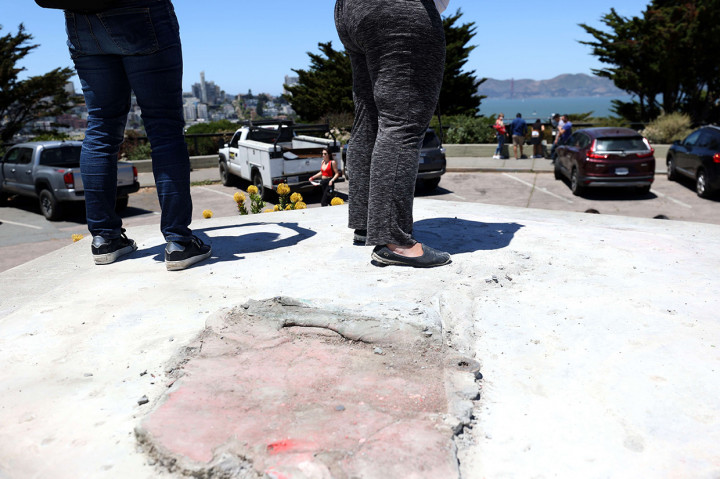 "Patung itu diturunkan karena tidak selaras dengan nilai-nilai San Francisco atau komitmen kami terhadap keadilan rasial," kata pejabat komisi seni Rachelle Axel. Patung itu diturunkan pada Kamis pagi di bawah arahan Wali Kota San Francisco, dan kemudian disimpan.