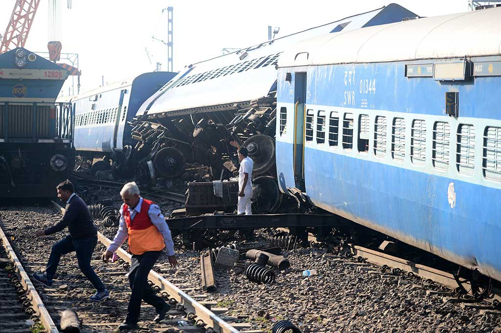 Uttar Pradesh: 13 gerbong kereta ekspres tergelincir dan keluar dari rel di India Utara, Jumat, 24 November 2017. Sedikitnya 3 orang tewas dan sembilan lainnya cedera akibat kecelakaan tersebut. AFP/Sanjay Kanojia Cek Berita dan Artikel yang lain di Google News