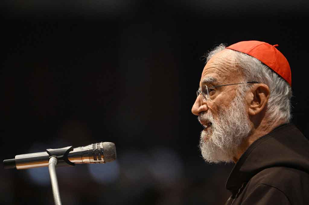 Menyitir seruan damai Injil 'Menempa pedangmu menjadi mata bajak dan tombakmu menjadi sabit', Cantalamessa berbicara tentang mengubah rudal menjadi pabrik dan rumah.