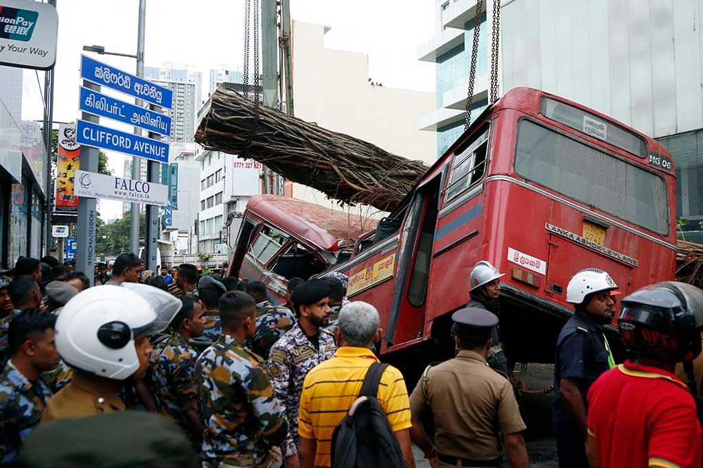 "Bus itu berhenti di stan Kollupitiya untuk mengambil lebih banyak penumpang ketika pohon itu menimpanya," kata seorang pejabat polisi kepada AFP. “Hujan turun semalaman dan pohon menjadi tidak stabil.”