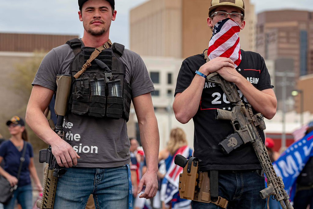 Pendukung Trump membawa senapan dan pistol saat berdemonstrasi di luar pusat penghitungan di Detroit dan Phoenix, Arizona.