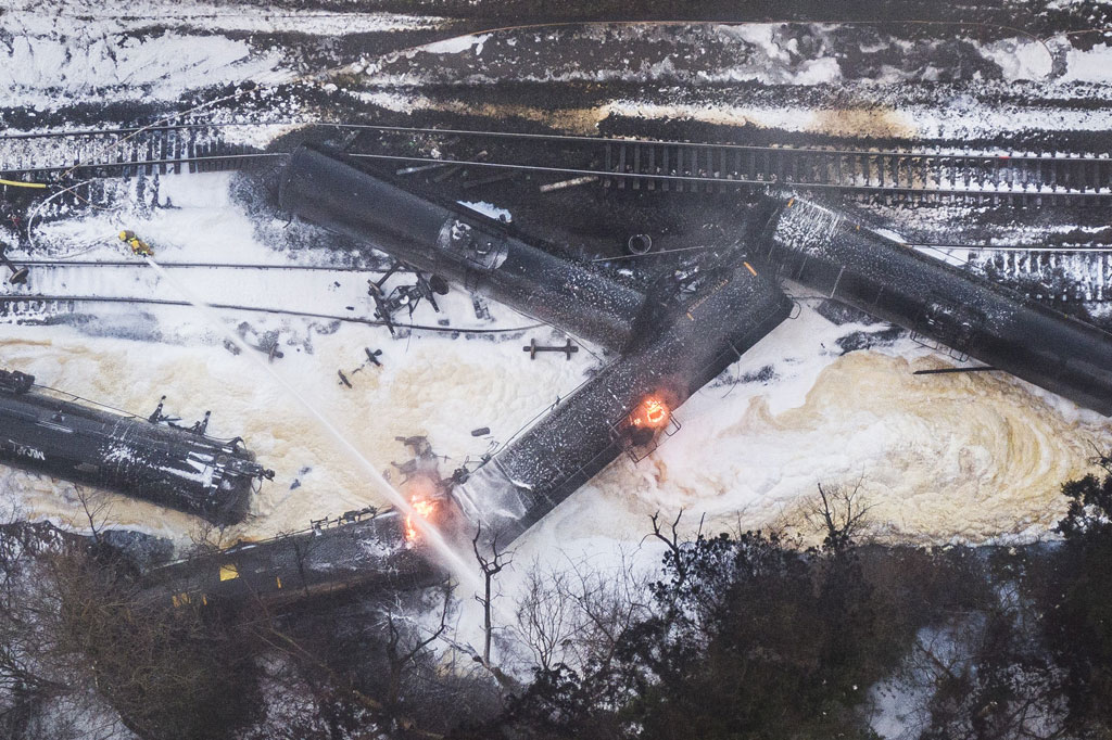 Washington: Sebuah kereta api yang membawa minyak mentah tergelincir dan terbakar hebat di negara bagian Washington dekat perbatasan Kanada, Selasa, 22 Desember 2020 waktu setempat. Kecelakaan tersebut memaksa evakuasi dalam radius setengah mil.