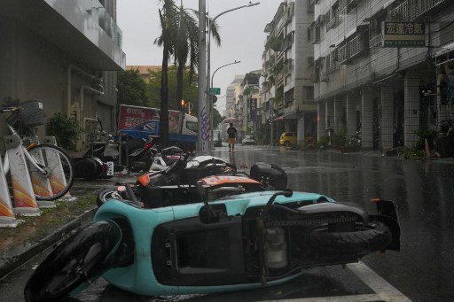 Pemadam kebakaran mengatakan jumlah korban tewas masih dua orang, kedua pria tewas di pantai timur sebelum topan itu menerjang daratan, dengan satu orang hilang dan 667 orang terluka. AFP PHOTO/Taiwanese City Councillor Chen Yi/Walid Berrazeg Cek Berita dan Artikel yang lain di Google News