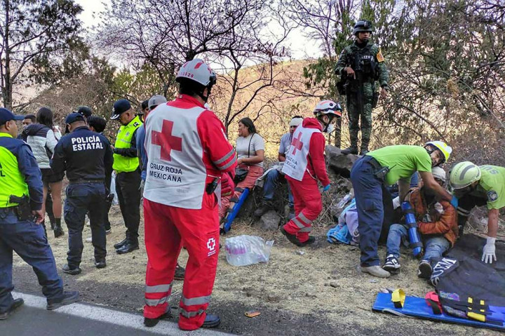 "Kecelakaan itu terjadi di negara bagian Meksiko, di pinggiran ibu kota, ketika sebuah bus terbalik di jalan raya," kata sekretariat keselamatan setempat.