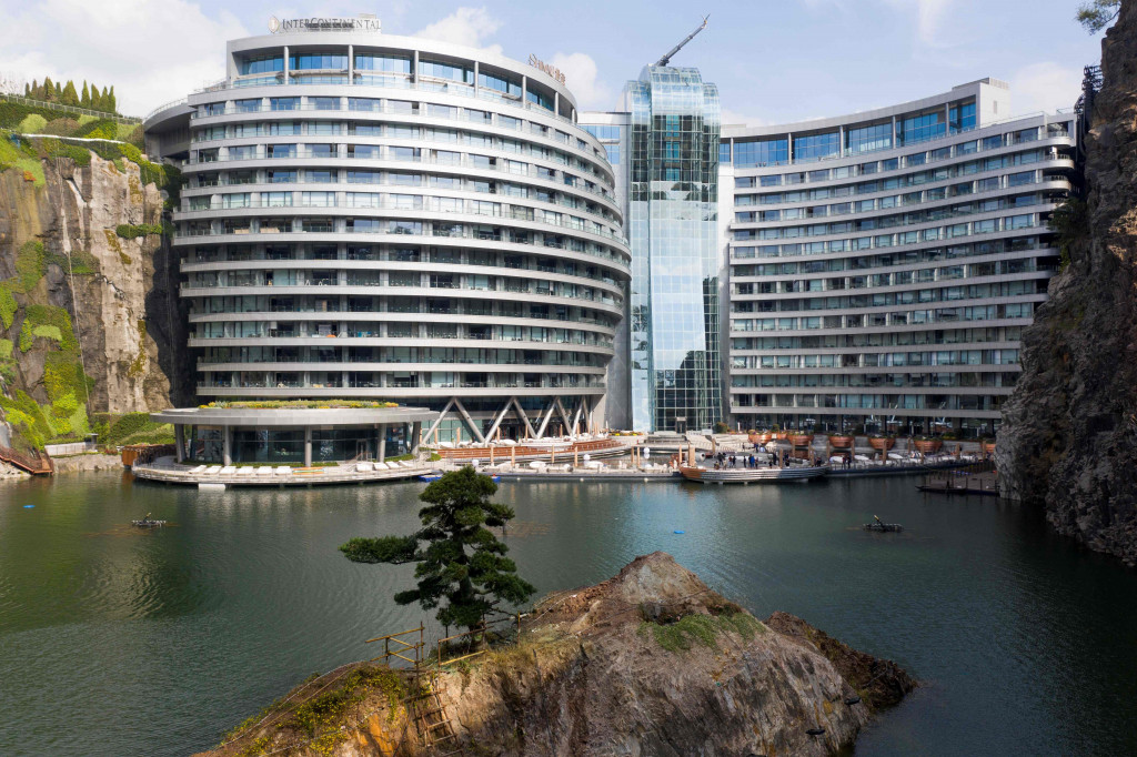 Shanghai: Pembangunan hotel Intercontinental Shanghai Wonderland akhirnya rampung setelah dibangun selama kurang lebih 10 tahun. Hotel ini pun menjadi hotel pertama di dunia yang berada di bawah tanah, Kamis, 15 November 2018. AFP Photo/Johannes Eisele Cek Berita dan Artikel yang lain di Google News