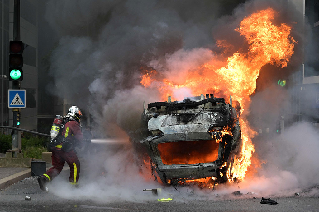 Kematian Nahel memicu protes massa di Nanterre, yang menyebabkan bentrokan antara masa pemrotes dan polisi.