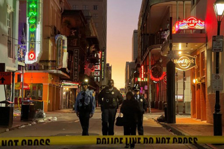 "Tindakan kekerasan yang mengerikan terjadi di Bourbon Street pagi ini," kata Gubernur Louisiana Jeff Landry di X, mendesak orang-orang untuk menjauh dari area tempat serangan itu terjadi. AFP PHOTO/Matthew Hinton Cek Berita dan Artikel yang lain di Google News