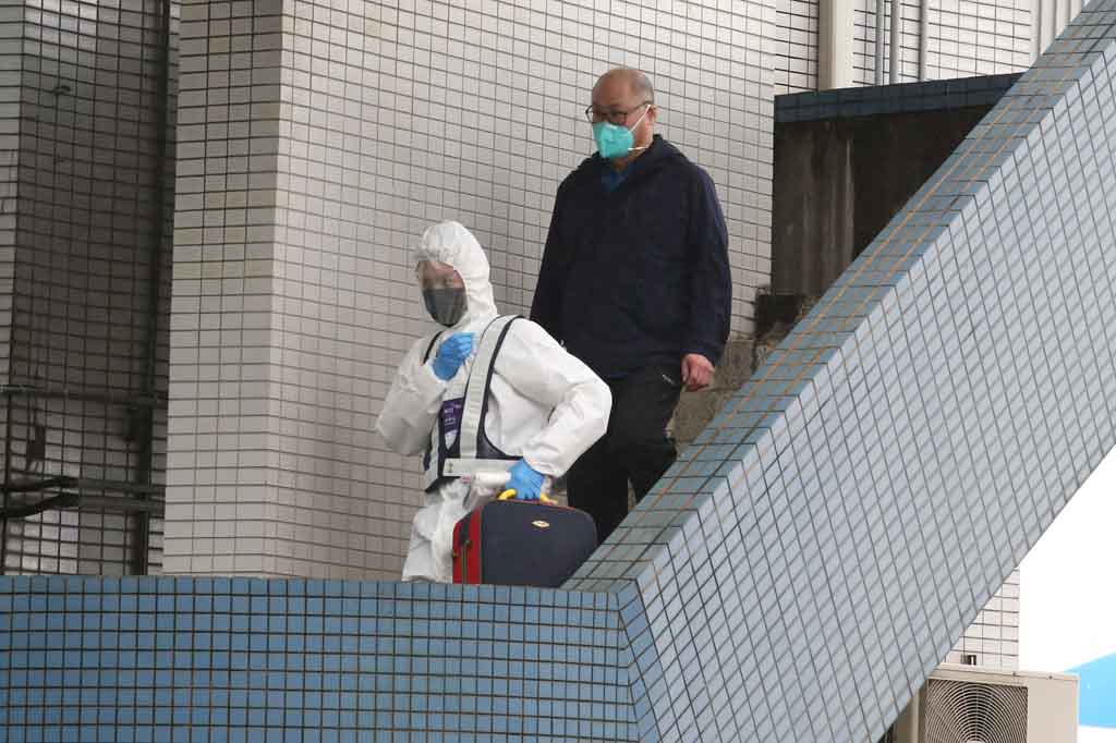 Media lokal menyiarkan langsung rekaman kedatangan Lee Ming-che di Taiwan melalui penerbangan Xiamen Air dengan mengenakan pakaian pelindung pandemi ke dalam mobil.