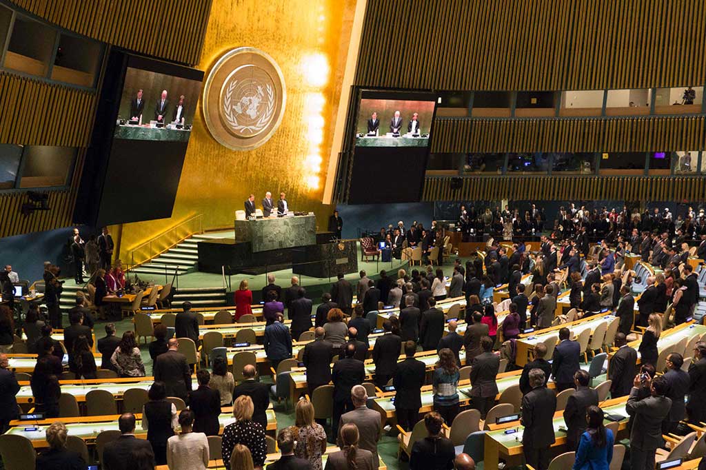 Metrotvnews.com, New York: Delegasi Perserikatan Bangsa-Bangsa dipimpin Sekjen Ban Ki-moon mengheningkan cipta untuk mendiang Raja Thailand Bhumibol Adulyadej, di Markas PBB, New York, Kamis (13/10/2016) waktu setempat. Acara tersebut digelar sebelum pengangkatan Antonio Guterres sebagai Sekjen PBB yang baru. Bhumibol wafat pada usia 88 tahun karena sakit. AFP/DON EMMERT Cek Berita dan Artikel yang lain di Google News