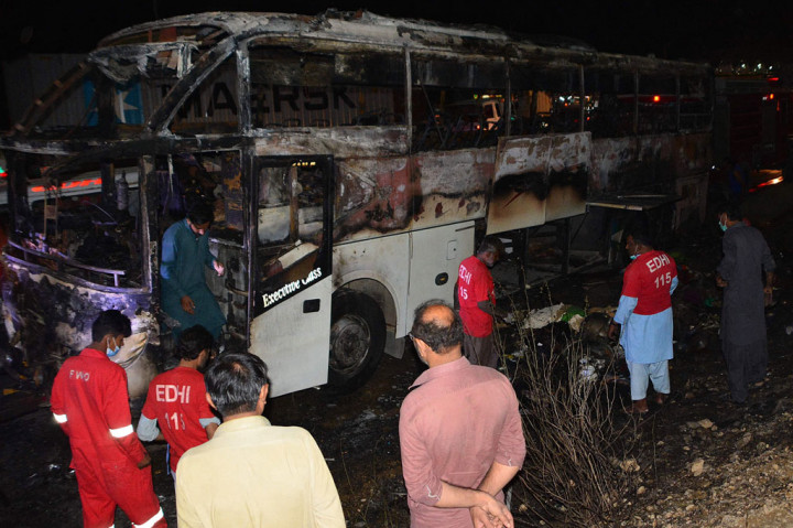 Insiden itu terjadi di jalan raya M-9 yang menghubungkan kota pelabuhan Karachi dengan kota Hyderabad dan kota Jamshoro di provinsi Sindh.