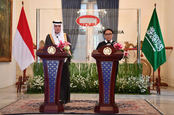Jakarta: Menteri Luar Negeri Retno Marsudi menerima kunjungan Menlu Arab Saudi Adel al-Jubeir, di Kantor Kemenlu, Jakarta, Selasa, 23 Oktober 2018. Salah satu hal yang dibahas adalah kasus kematian wartawan Jamal Khashoggi. Antara Foto/Sigid Kurniawan Cek Berita dan Artikel yang lain di Google News