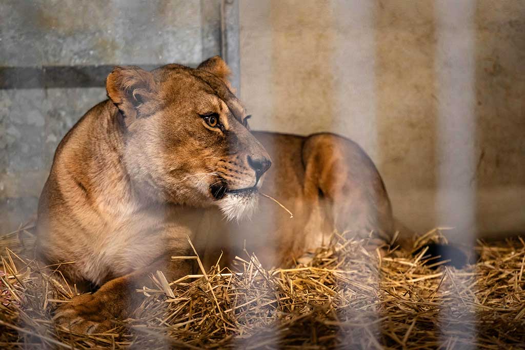 "Sementara kedua singa betina itu ditemukan di Ukraina timur dan mungkin juga dipelihara oleh individu yang menyelamatkan diri dari pertempuran," kata Von Croy.