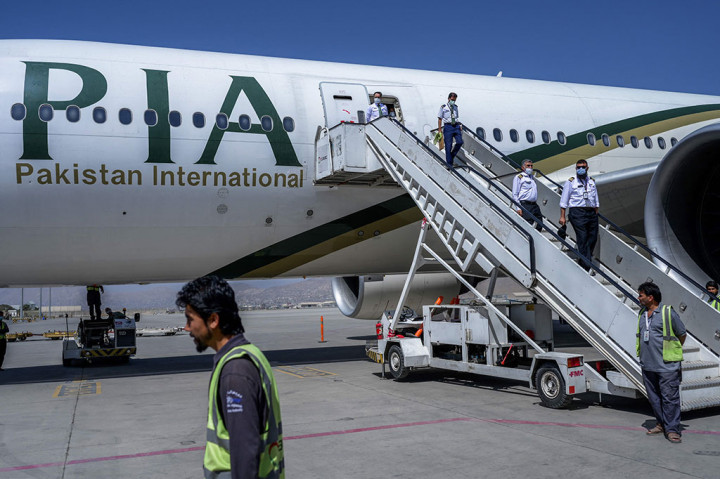 Jakarta: Sebuah pesawat Pakistan International Airlines (PIA) yang membawa beberapa penumpang mendarat di bandara Kabul Senin, 13 September 2021. Ini merupakan penerbangan komersial internasional pertama yang mendarat sejak Taliban merebut kembali kekuasaan di Afghanistan pada 15 Agustus.