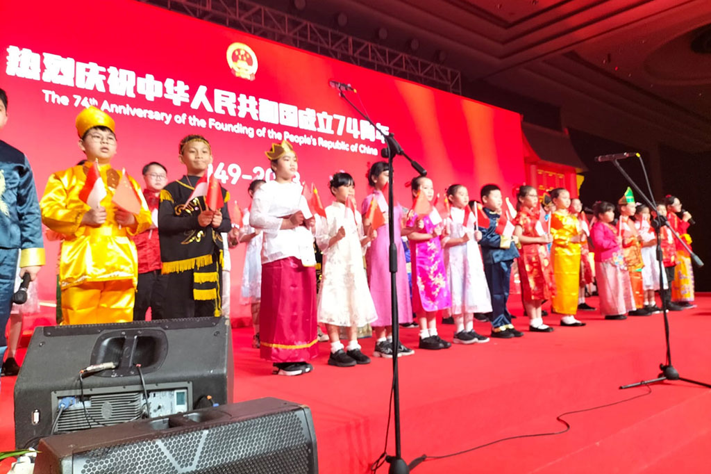 Acara tersebut juga disisipi penampilan siswa Sekolah Harapan Bangsa yang menyanyikan lagu kebangsaan Indonesia dan Tiongkok.