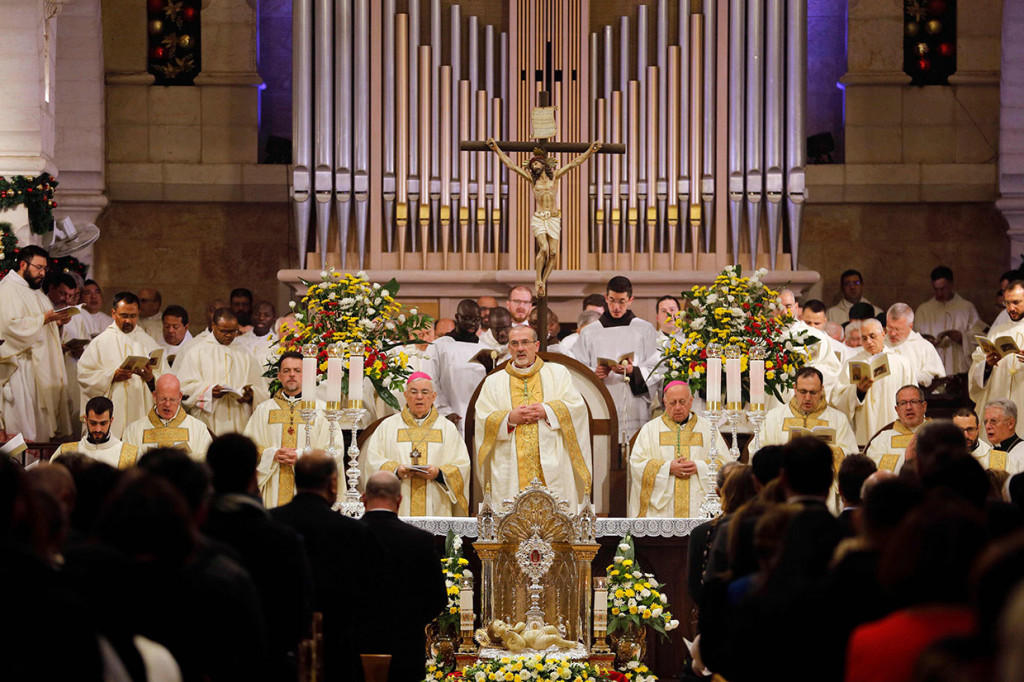 Betlehem: Presiden Palestina Mahmoud Abbas menghadiri misa malam Natal di Betlehem, Tepi Barat, Selasa, 24 Desember 2019 malam waktu setempat. Misa malam Natal dipimpin oleh Uskup Katolik Roma paling senior di Timur Tengah, Uskup Agung Pierbattista Pizzaballa. AFP Photo/Nasser Nasser						Cek Berita dan Artikel yang lain di Google News