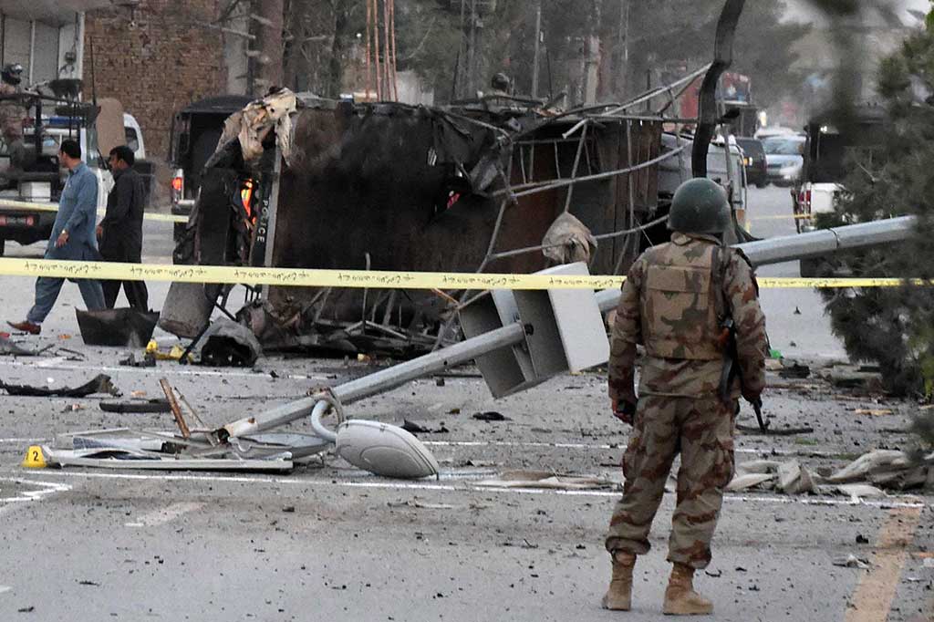 Quetta: Ledakan bom bunuh diri kembali mengguncang Pakistan, Selasa, 24 April 2018. Setidaknya enam polisi tewas dan 15 personel keamanan terluka ketika tiga pembom bunuh diri meledakkan diri mereka secara berurutan di Pakistan barat daya. AFP/Banaras Khan Cek Berita dan Artikel yang lain di Google News