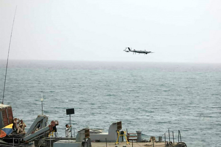 “Semua jenis drone canggih terbaru yang diproduksi oleh militer dan Kementerian Pertahanan telah terbang di atas perairan Samudra Hindia untuk menunjukkan kemampuan mereka,” tambahnya sembari menunjukkan gambar drone yang lepas landas dari kapal AL Iran.