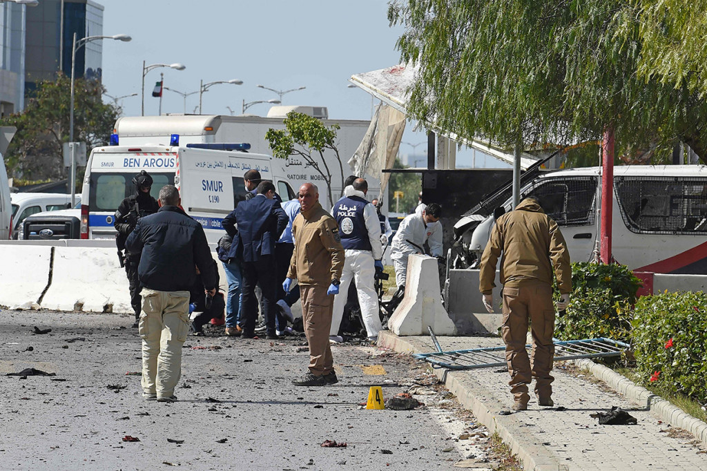 Lima petugas lainnya terluka dan seorang warga sipil wanita yang terluka ringan berada dalam kondisi stabil. AFP PHOTO/Fethi Belaid Cek Berita dan Artikel yang lain di Google News