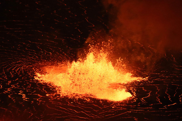 "Retakan pertama kali muncul di kawah Halema'uma'u Rabu pagi dan dengan sangat cepat memberi jalan ke air mancur lava, yang terkadang melebihi suhu 1.100 derajat Celcius," kata USGS.