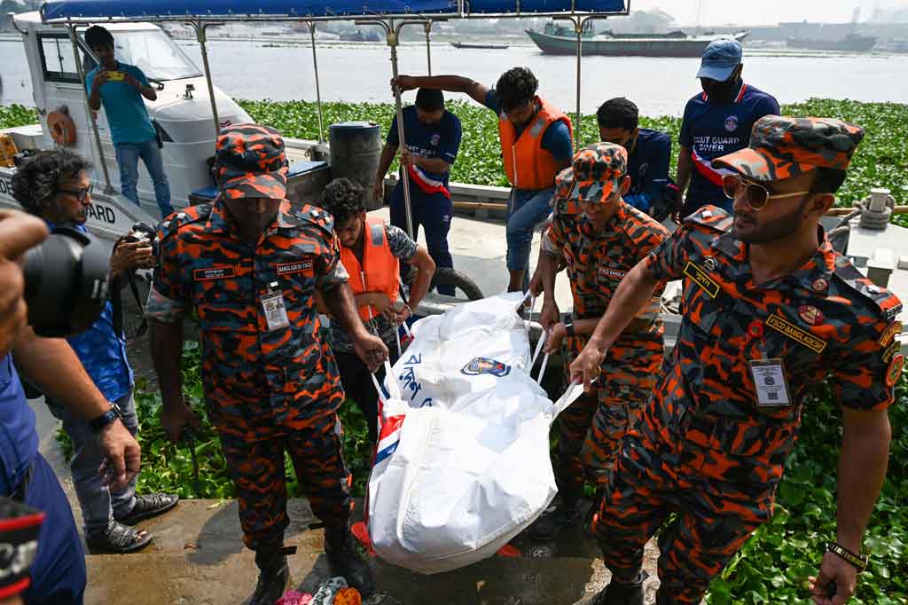 Administrator distrik Monjurul Hafiz mengatakan personel penjaga pantai dan penyelam membantu upaya penyelamatan, sementara kerumunan besar warga telah berkumpul di kedua tepi Sungai Shitalakshya untuk menyaksikan pencarian korban selamat.
