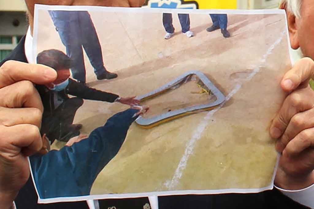 Tokyo: Sebuah jendela dari helikopter militer AS jatuh ke sebuah lapangan olah raga sebuah sekolah di Jepang, Rabu, 13 Desember 2017. Militer AS meminta maaf atas insiden tersebut. AFP/Jiji Press Cek Berita dan Artikel yang lain di Google News