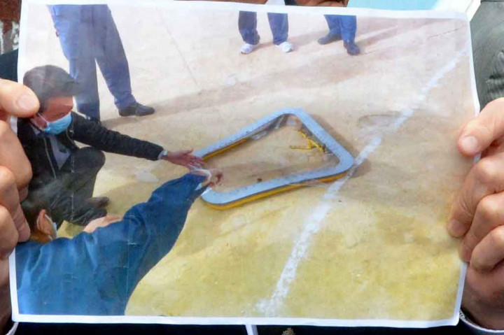 Tokyo: Sebuah jendela dari helikopter militer AS jatuh ke sebuah lapangan olah raga sebuah sekolah di Jepang, Rabu, 13 Desember 2017. Militer AS meminta maaf atas insiden tersebut. AFP/Jiji Press