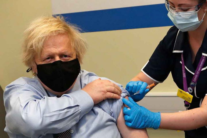 London: Perdana Menteri Inggris Boris Johnson menerima dosis pertama vaksin Covid AstraZeneca, di rumah sakit London tempat dia berjuang untuk hidupnya hampir setahun yang lalu, Jumat, 19 Maret 2021 waktu setempat. Langkah yang diambil Johnson tersebut untuk meyakinkan publik bahwa vaksin tersebut aman.