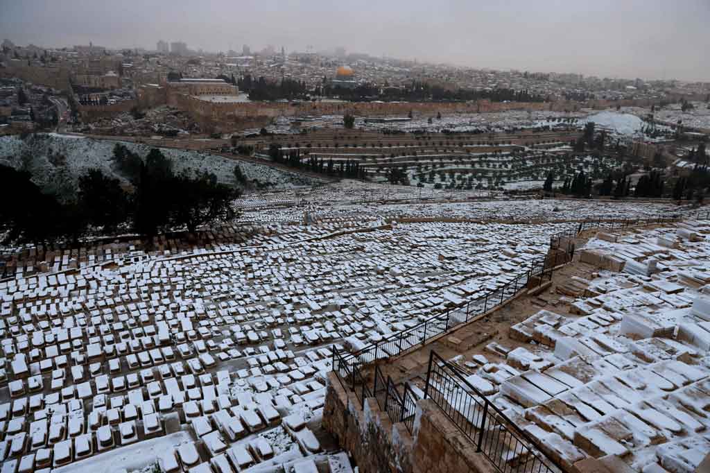 Sebelum fajar, anak-anak saling melempar bola salju di luar gerbang Kota Tua, sementara umat beriman berjalan dengan susah payah ke situs-situs suci Yudaisme, Islam, dan Kristen.