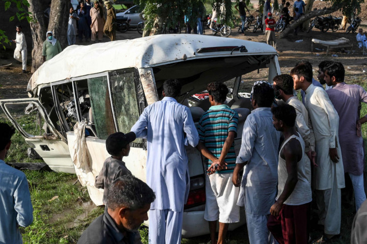 Gambar-gambar yang disiarkan di televisi lokal menunjukkan van yang hancur di jalur kereta. Menteri kereta api Pakistan menyerukan penyelidikan segera atas kecelakaan itu. AFP PHOTO/Arif Ali Cek Berita dan Artikel yang lain di Google News