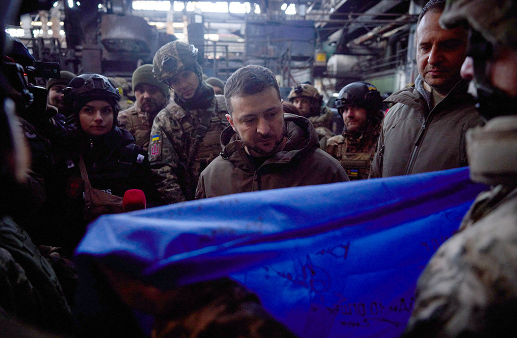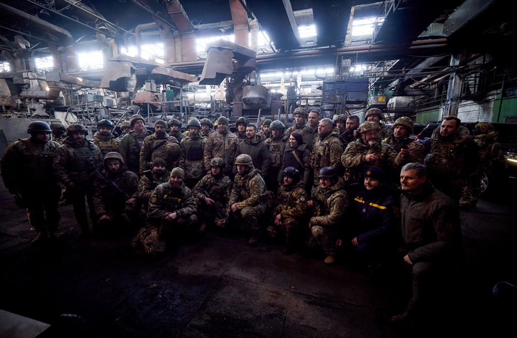 Zelensky bertemu dengan pejabat militer dan membagikan penghargaan kepada prajurit Ukraina, yang telah menahan gempuran militer Rusia selama berbulan-bulan yang sengit untuk kota tersebut.