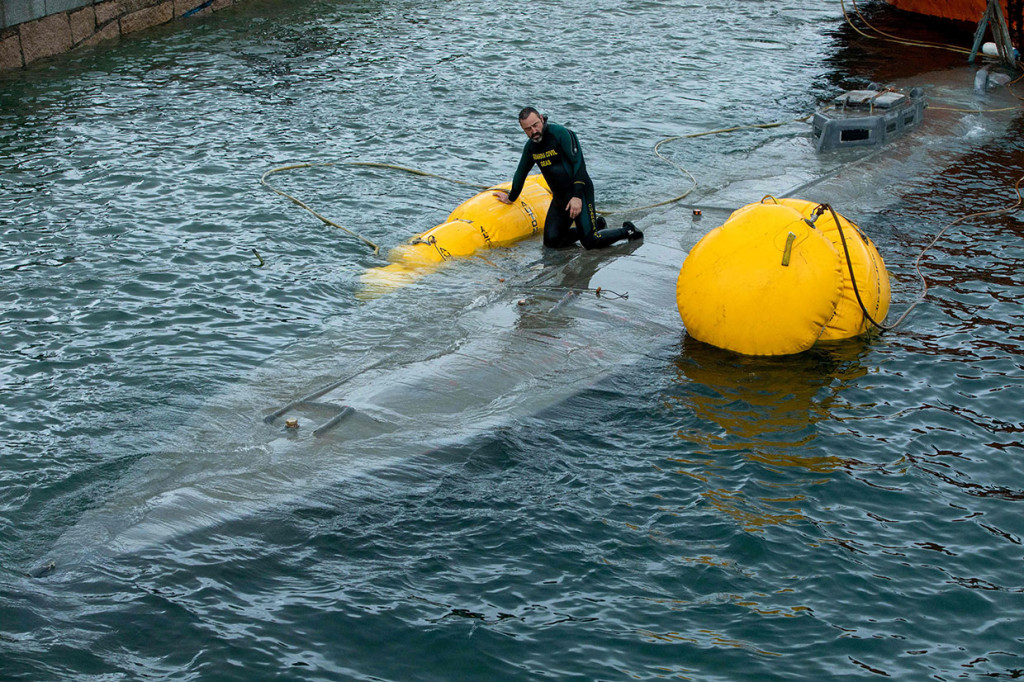 Kapal selam yang diduga membawa sekitar 3,85 ton kokain tersebut diapungkan dengan memanfaatkan para penyelam dan balon. Kapal itu pun kemudian digiring ke pelabuhan di Cangas di Provinsi Pontevedra.