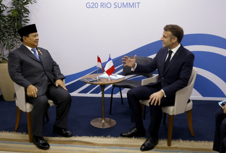 Jakarta: Presiden Prabowo Subianto melakukan pertemuan bilateral dengan Presiden Prancis Emmanuel Macron di sela hari kedua Konferensi Tingkat Tinggi (KTT) G20, Rio de Janeiro, Brasil, Selasa, 19 November 2024. Macron mengawali pembicaraan dengan memberikan selamat atas pelantikan Prabowo sebagai Presiden.