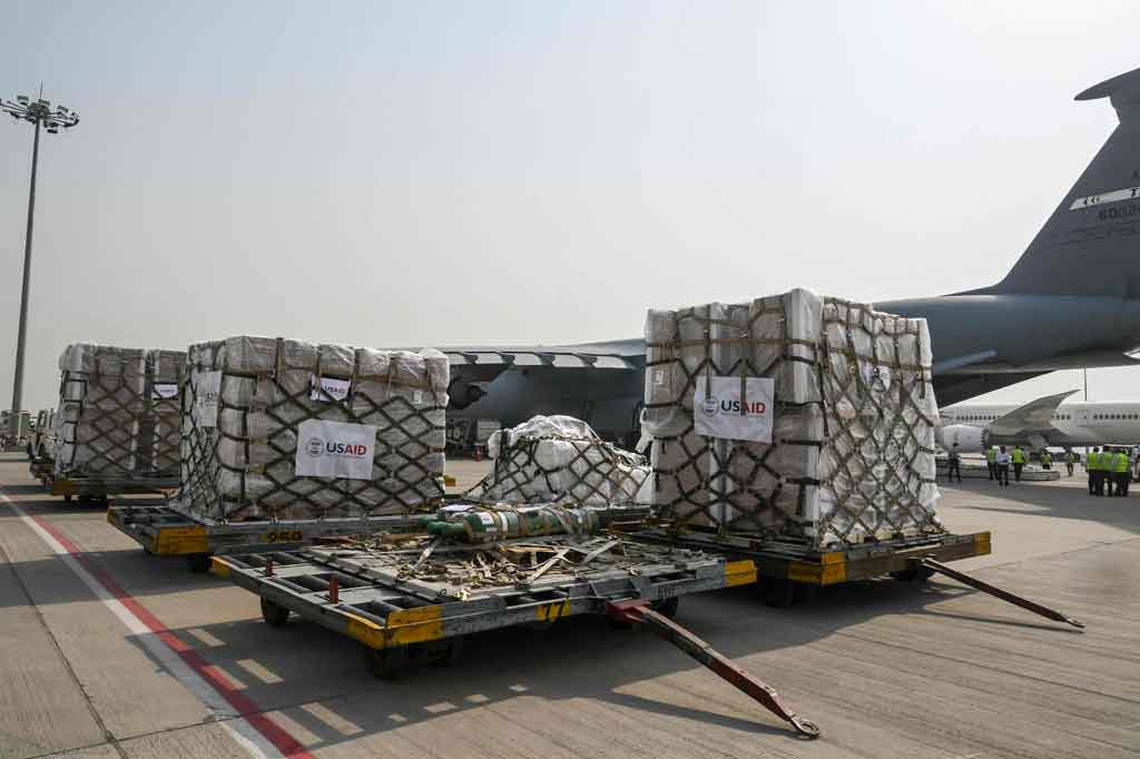 Pejabat AS mengatakan penerbangan khusus, yang juga akan membawa peralatan yang disumbangkan oleh perusahaan dan individu, akan berlanjut hingga minggu depan. AFP PHOTO/Prakash Singh Cek Berita dan Artikel yang lain di Google News