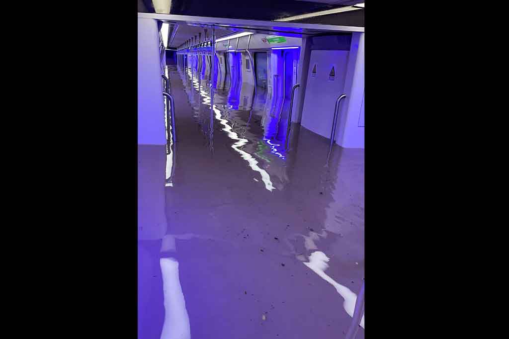 Gambar-gambar dramatis saat penumpang berjuang melawan air setinggi leher di dalam gerbong kereta, muncul di media sosial.