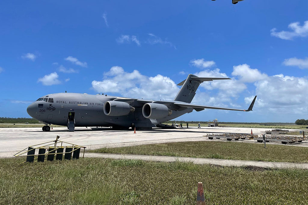 Dua pesawat angkut militer besar dari Australia dan Selandia Baru mendarat di bandara utama Tonga, yang baru saja dibersihkan dari lapisan abu tebal setelah upaya yang sungguh-sungguh.
