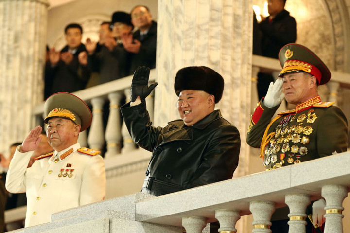 "Sementara itu Kim mengawasi parade yang mencakup roket dengan kemampuan serangan yang kuat untuk memusnahkan musuh secara menyeluruh dengan cara pencegahan di luar wilayah," kata KCNA - menyiratkan jangkauan yang melampaui semenanjung Korea. AFP PHOTO/KCNA VIA KNS Cek Berita dan Artikel yang lain di Google News