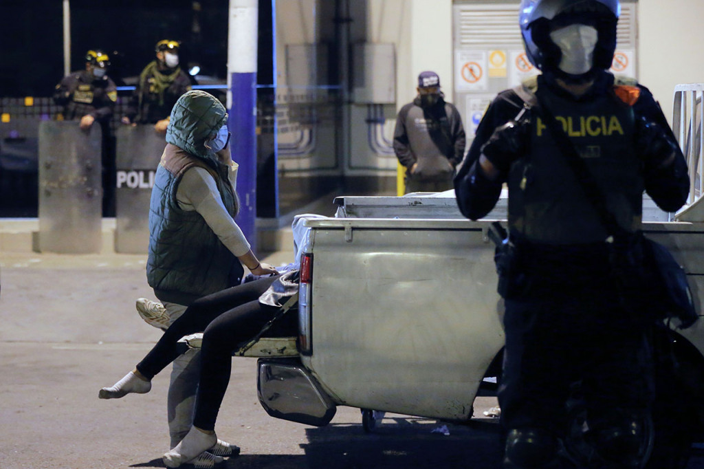 Hukum Peru menyerukan denda sekitar USD110 (sekitar Rp1,6 juta) dan potensi hukuman penjara bagi mereka yang melanggar pembatasan terkait covid-10. AFP PHOTO/Luka Gonzales/Ernesto Benavides Cek Berita dan Artikel yang lain di Google News