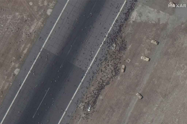 Potret Dramatis Kerumunan Warga Afghanistan di Bandara Kabul Dilihat dari Satelit