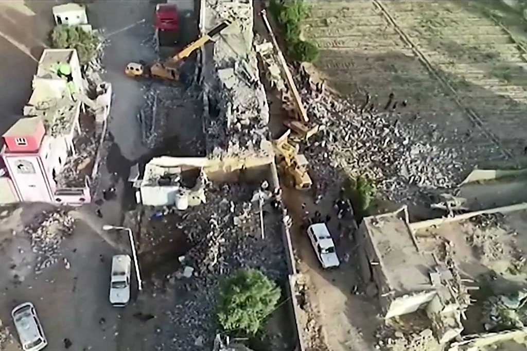Adegan mengerikan terungkap saat petugas penyelamat menarik jenazah dari bangunan penjara yang hancur dan menumpuk jenazah yang hancur di dekatnya.