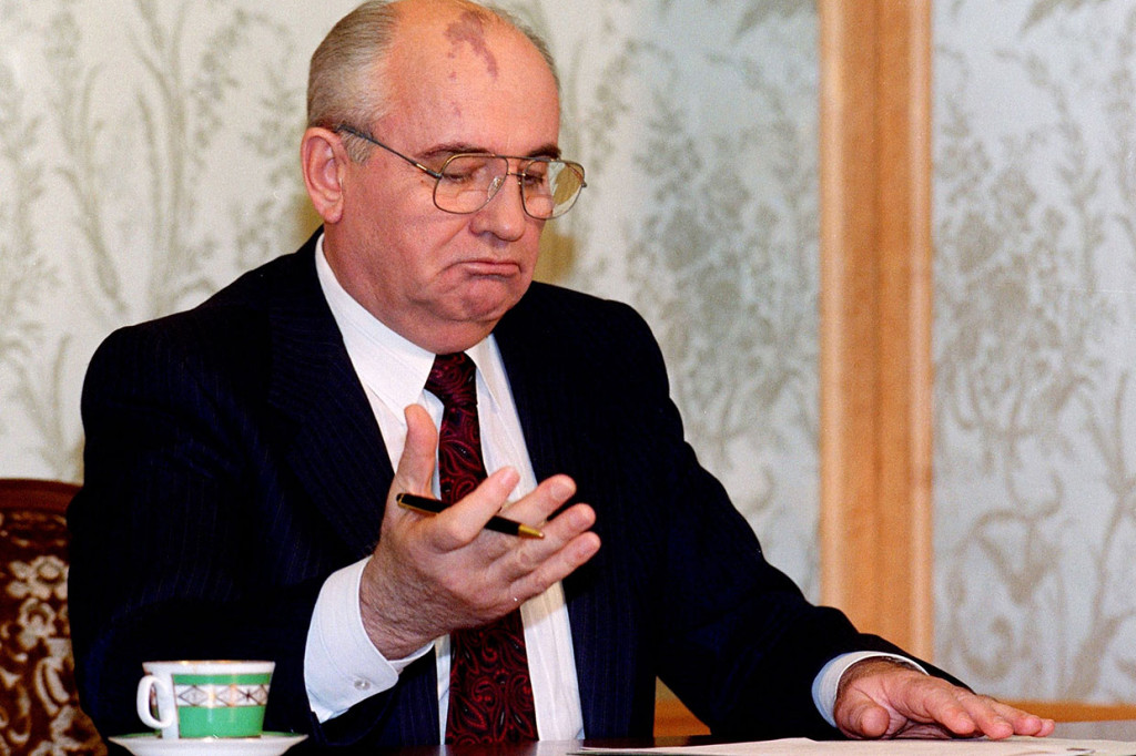 Dia memenangi Hadiah Nobel Perdamaian pada 1990 untuk menegosiasikan pakta senjata nuklir bersejarah dengan pemimpin AS Ronald Reagan dan keputusannya untuk menahan tentara Soviet ketika Tembok Berlin runtuh setahun sebelumnya dipandang sebagai kunci untuk melestarikan perdamaian Perang Dingin. AFP PHOTO/DAVID GANNON/VITALY ARMAND/SUHAILA SAHMARANI/JEAN-LOUP GAUTREAU Cek Berita dan Artikel yang lain di Google News