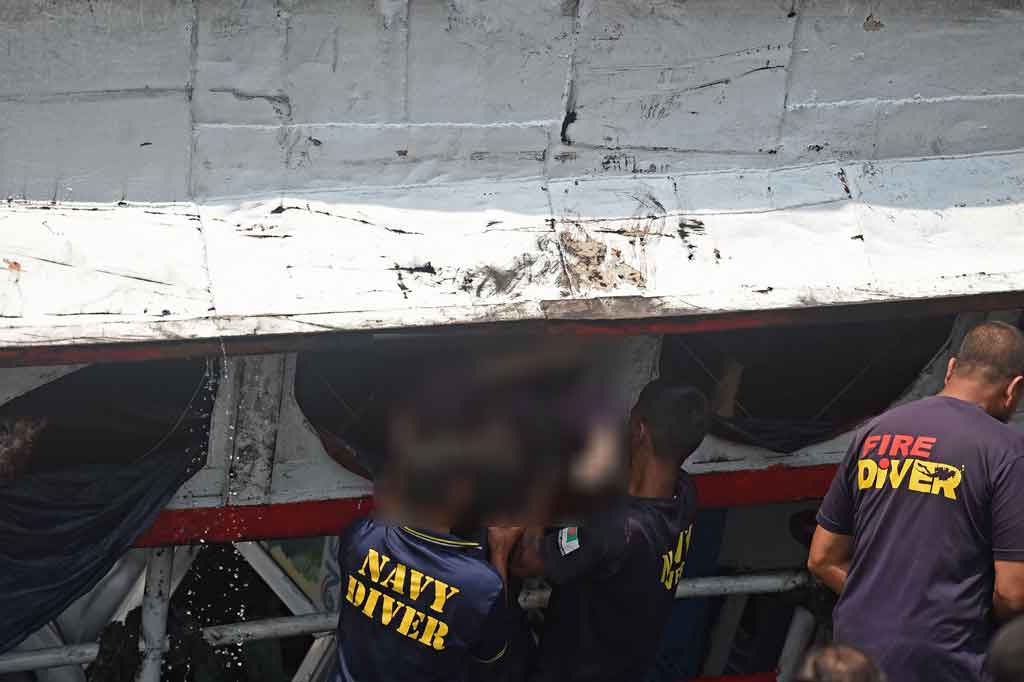 Tim penyelamat, termasuk penyelam dari pemadam kebakaran, mencari korban pada Senin, sementara operasi penyelamatan terhambat oleh badai pada Minggu malam.