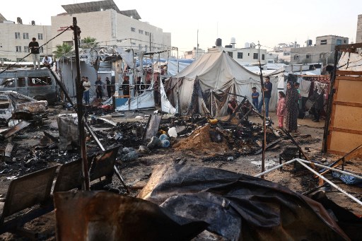 Pesawat tempur Israel mengebom tenda-tenda pengungsi di halaman rumah sakit, yang memicu kebakaran besar dan menghanguskan sekitar 30 tenda. Sedikitnya empat orang tewas dan puluhan lainnya luka-luka akibat serangan tersebut.