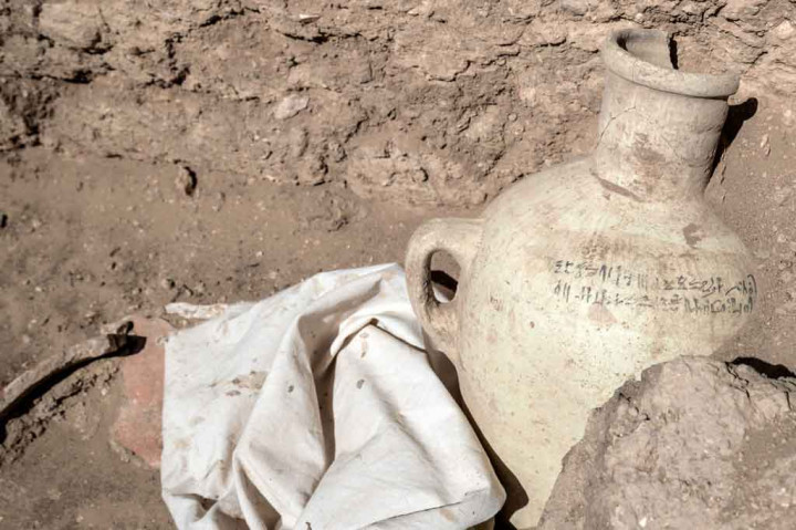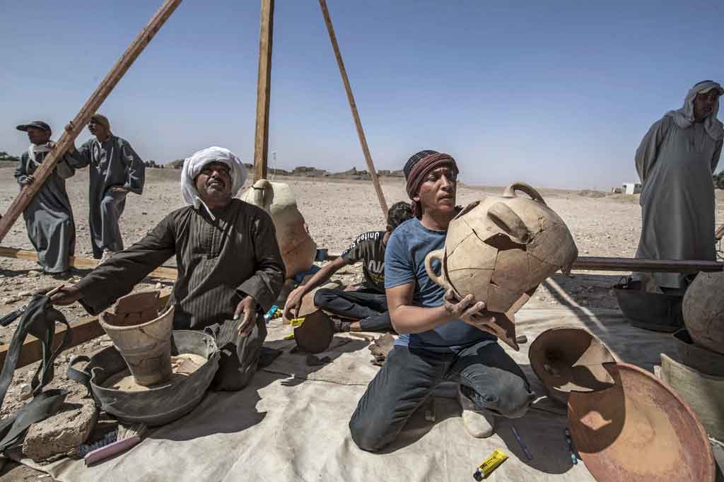 Di lokasi dekat Luxor, rumah dari Lembah Para Raja yang legendaris, para pekerja dengan hati-hati mengevakuasi pot-pot kuno dan menunjukkan sisa-sisa kerangka manusia dan hewan yang mereka gali.