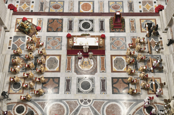 Semua acara kepausan antara 24 Desember dan 6 Januari berlangsung di dalam ruangan secara terbatas atau tanpa partisipasi publik dan disiarkan langsung di internet dan di televisi. AFP PHOTO/Vatican Media/Vicenzo Pinto Cek Berita dan Artikel yang lain di Google News
