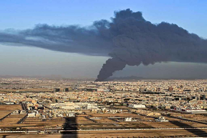 Jakarta: Serangan pemberontak Houthi Yaman di kilang minyak Aramco Saudi memicu kebakaran besar di dekat sirkuit Formula Satu Jeddah, Jumat, 25 Maret 2022 waktu setempat. Serangan terjadi selama sesi latihan yang disiarkan televisi.