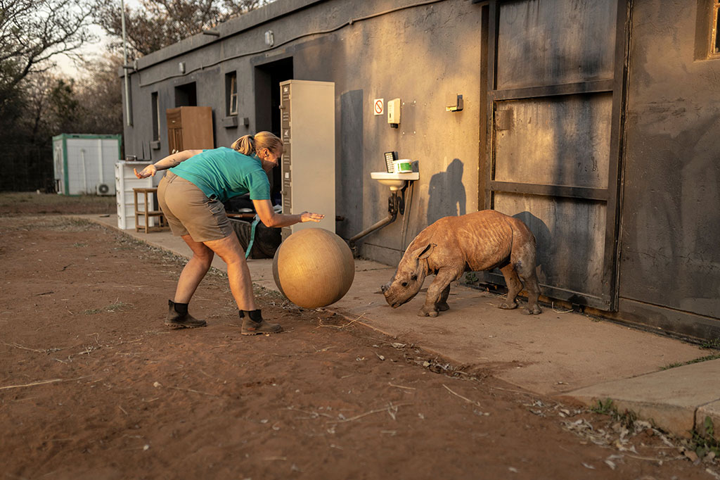 Van der Merwe, 40, pengelola Panti Asuhan Badak, yang merawat anak-anak badak yatim piatu oleh pemburu liar, merehabilitasi mereka dan kemudian melepaskannya kembali ke alam liar.