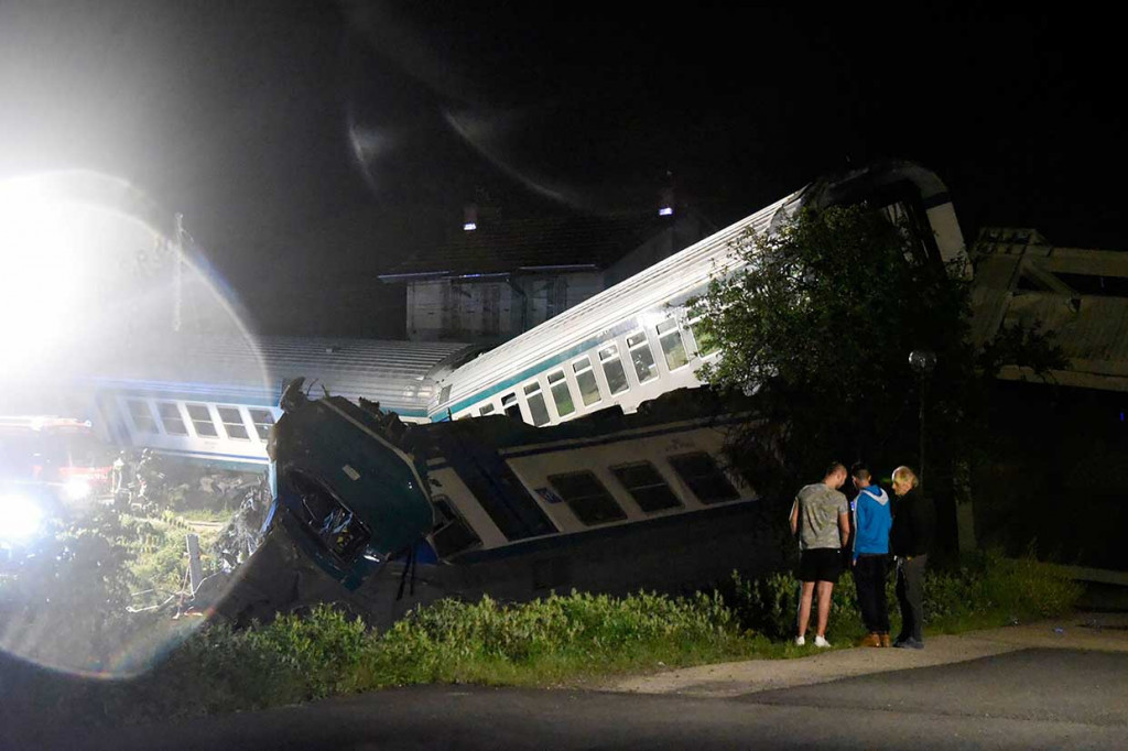 Turin: Sedikitnya dua orang tewas dan beberapa lainnya luka-luka akibat sebuah kereta penumpang menabrak sebuah truk di perlintasan di Italia, Kamis, 24 Mei 2018. Kerasnya tabrakan membuat beberapa gerbong terguling. AFP Photo/Alessandro Contaldo